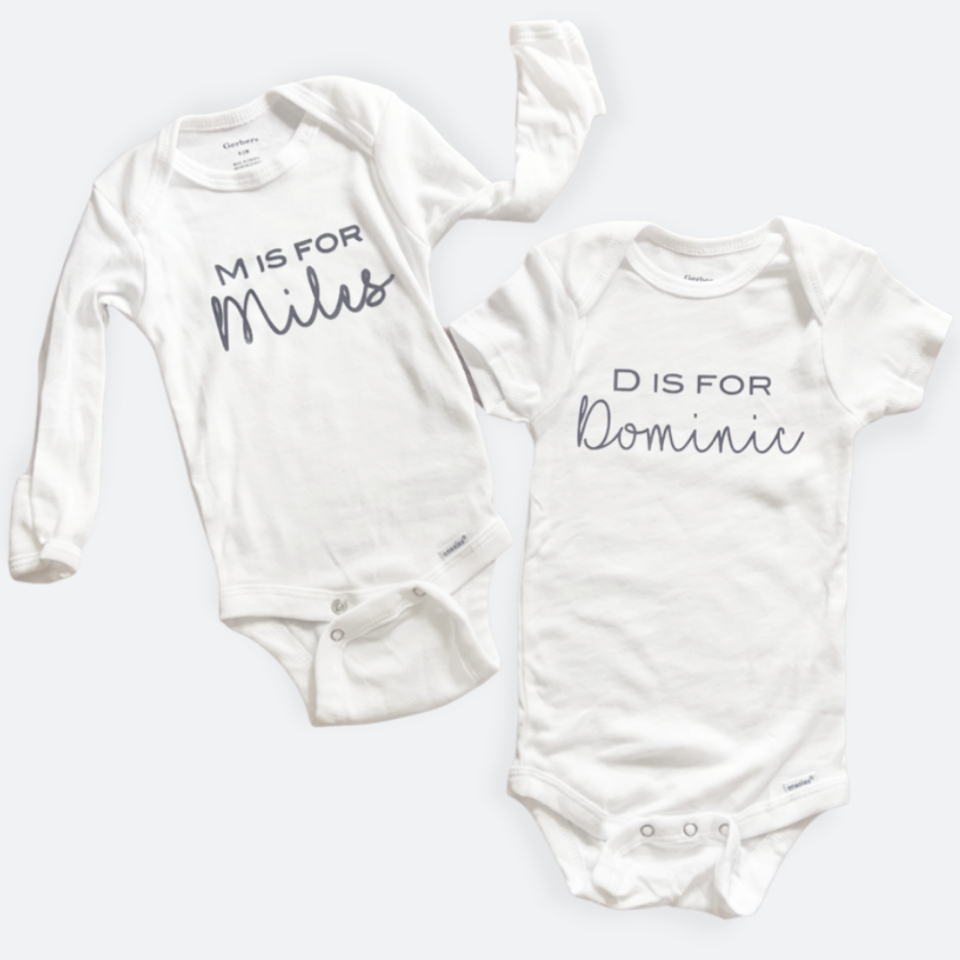 A baby can never have enough onesies. With this super-cute, personalized onesie, his/her brand new name will be celebrated every time it is worn. Available with personalized names or as the classic "B is for Baby".