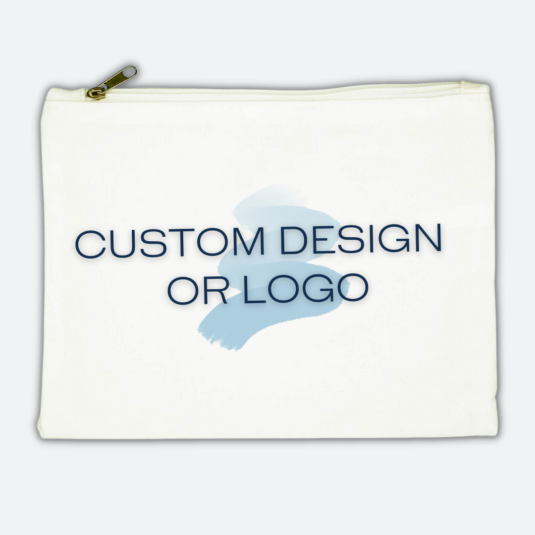 Pouch pictured measures 8x6 Inches with Zipper Metal Closure. Great client gift or giveaway.