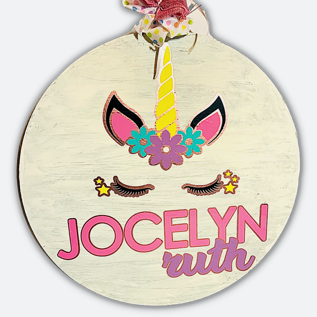 ceLEBrating a baby is one of life's greatest blessing. This hand painted, unicorn-embellished personalized wall sign for a nursery or kids room is the perfect gift or home decor. Imagery depicts a fun lashed unicorn design with metallic accents. If alternative design is preferred, please request design in notes at checkout or start a custom order request.