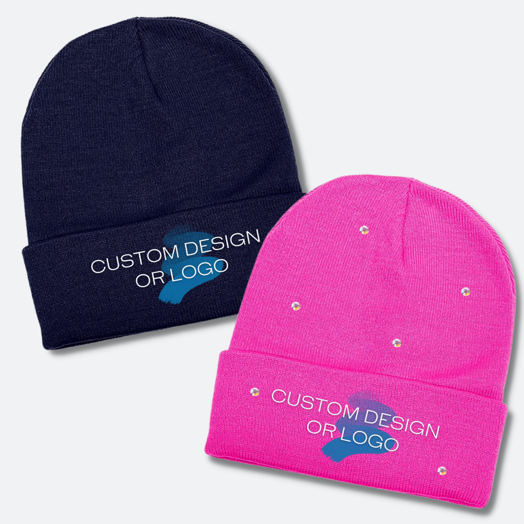Branded Beanie | Party Favor | Your Logo or Custom Design | Blinged Out