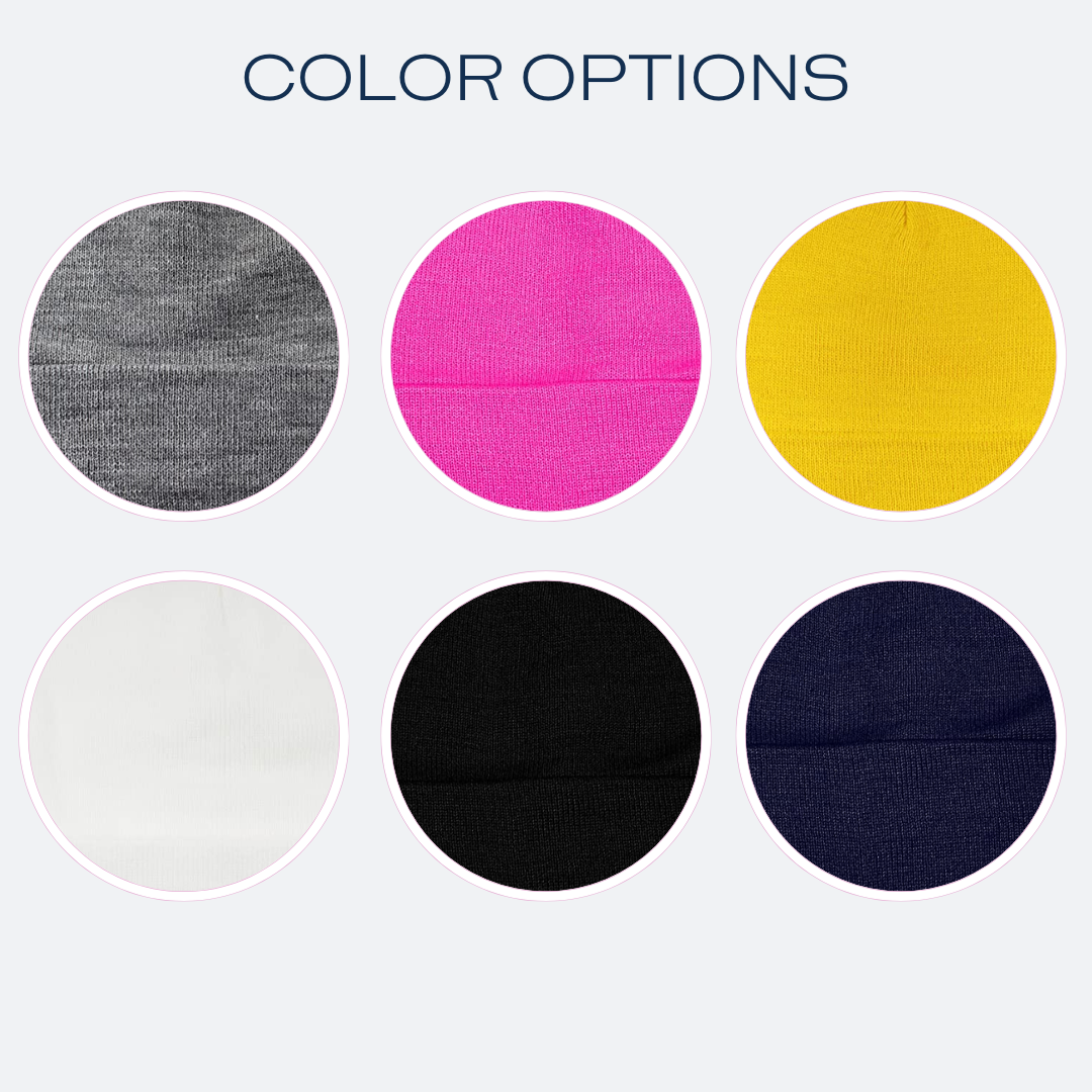 This customized winter beanie pictured is soft, warm and functional. Made of 100% acrylic; One size fits all. Beanie and personalization are made to STRETCH.