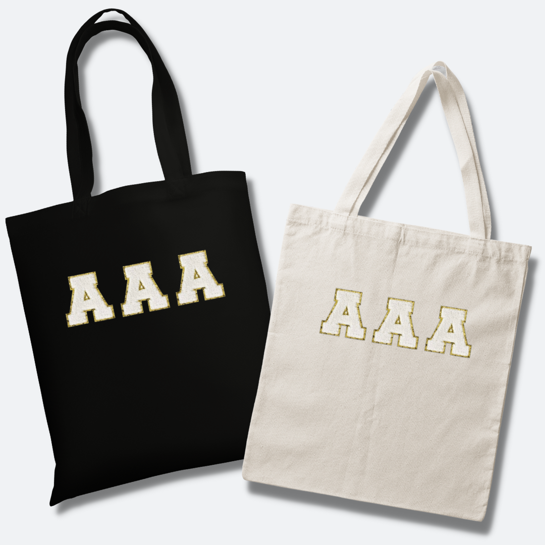 Trendy fuzzy patches on any tote. This product can be customized and personalized to your specific requests.