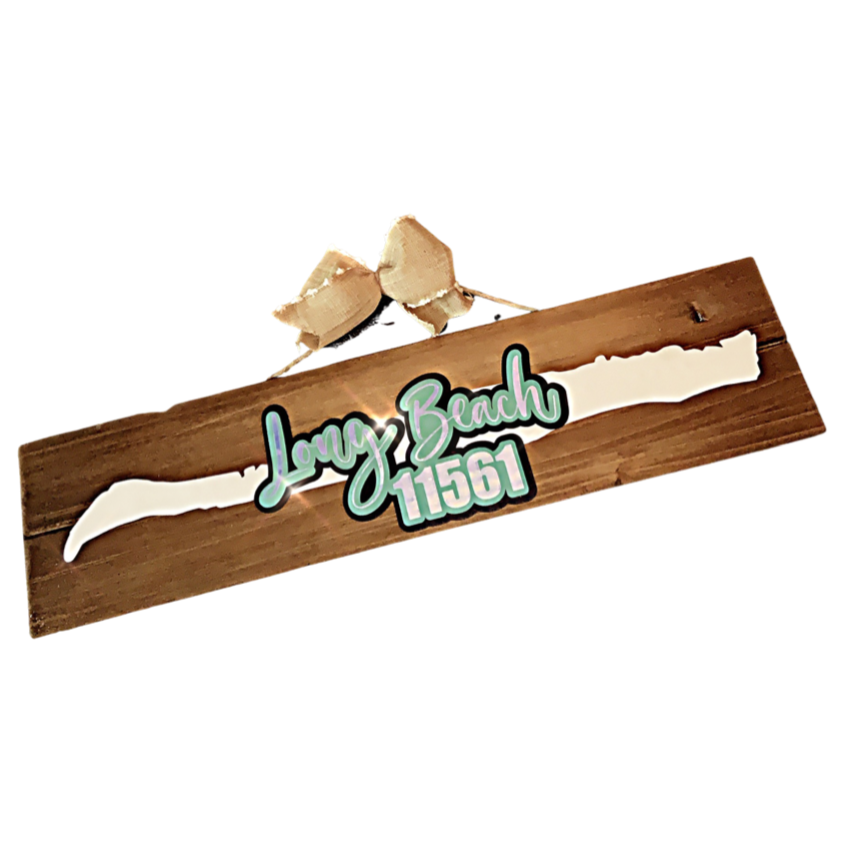 Featuring a hand-drawn silhouette of the barrier island, this home decor is perfect for any beachy home, backyard, vacation rental or cabana. The Long Beach design is customized with holograpic accents to reflect the glimmering aspects of Long Beach's beautiful ocean waves.