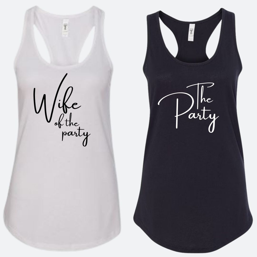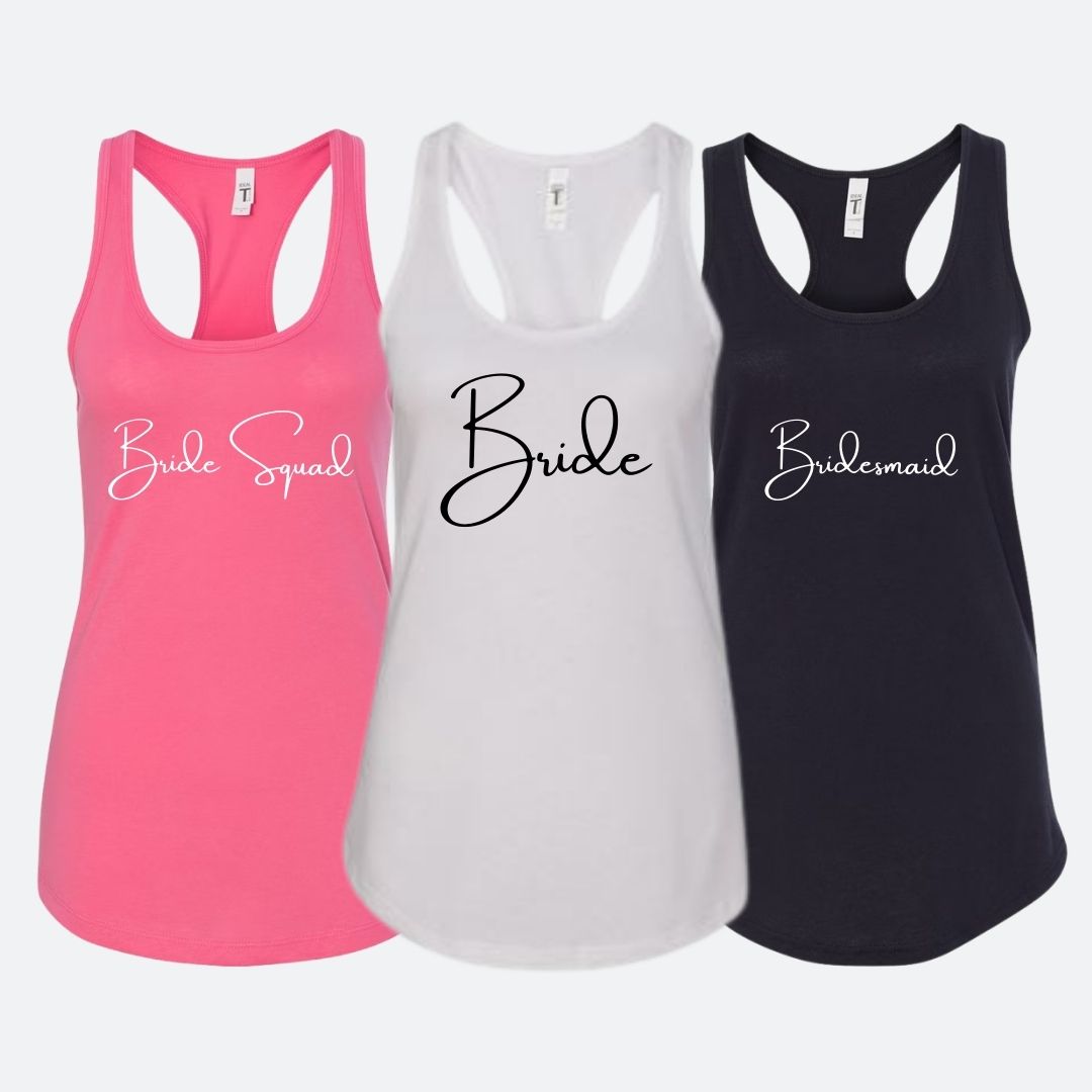 Coordinate with the bride (or groom) with a personalized tank. Personalize all of the moments leading up to the I Dos. Perfect gift for bachelor/ette events, getting